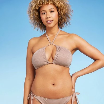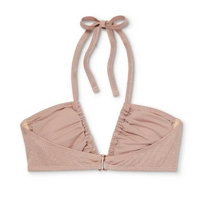 Whether you’re in the water or relaxing poolside, you’ll surely stand out in this Triangle Halter Bikini Top from Shade & Shore™. The bikini top features a triangle cut and halter neckline silhouette that adds unique style, and the shiny finish adds some versatility to the mix. The stretch material offers flexible movement and wear, while removable cups make it easy to customize your look to suit your style. Plus, the behind the neck tie-closure and back hook help you find a secure and customized fit. Pair this triangle bikini top with any number of solid-color or printed bottoms for a look you’ll love to wear.
