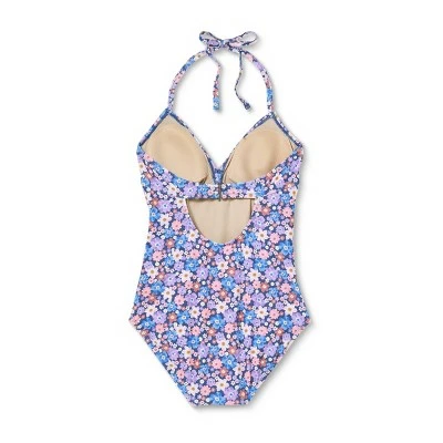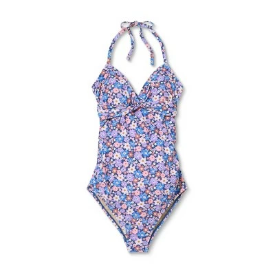Style a chic swim look that you’ll love flaunting when you hit the pool or beach with this Wrap-Front Halter One-Piece Maternity Swimsuit from Isabel Maternity by Ingrid & Isabel™. Boasting vibrant floral print for a charming look, this sleeveless swimsuit is designed with a wrap-front bodice for a flattering fit that’s sure to turn heads. The halter straps offer you a secure and adjustable fit, while ruched sides accommodate your growing baby bump. The halter swimsuit is crafted from a soft and stretchy material for easy movement, and sewn-in cups provide additional bust coverage. Pair with a sun hat and shades for a chic finish.